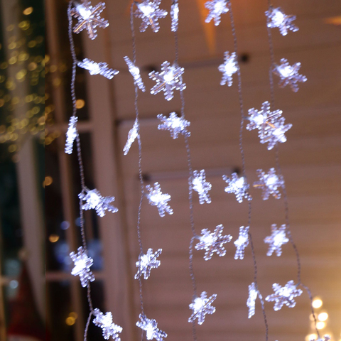 Cortina de luz LED navideña, cadena de luces con decoración de copo de nieve, funciona con batería para uso en exteriores